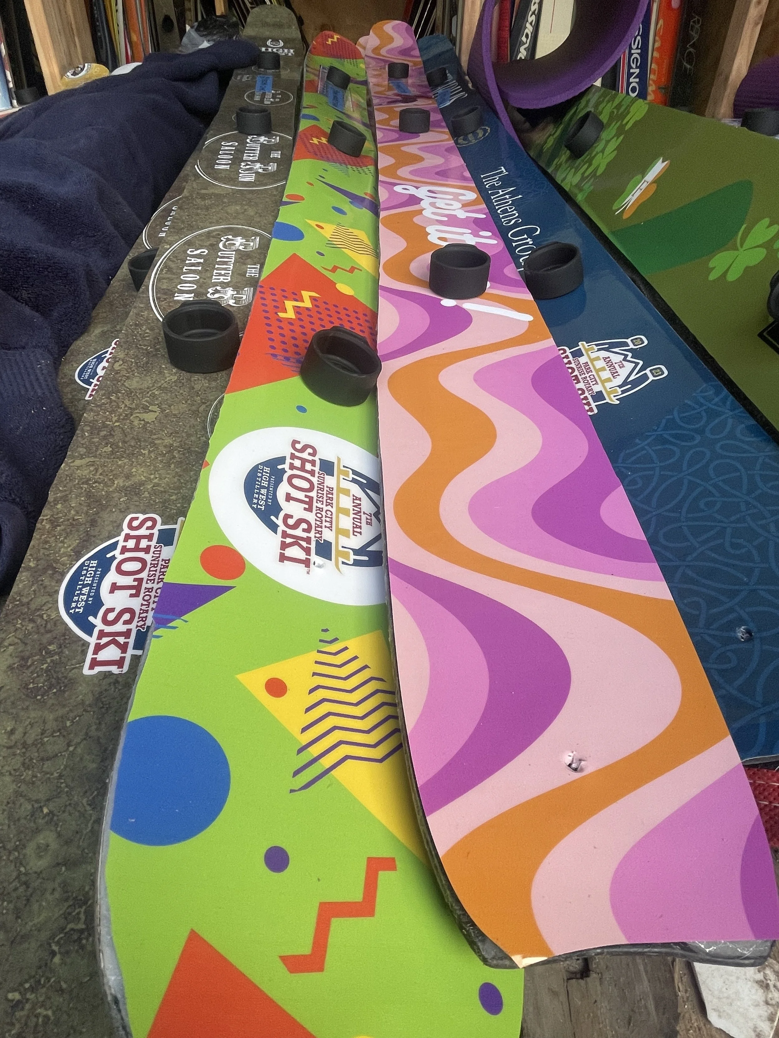 2 Custom-wrapped skis with your company/name/logo (sponsor keeps both Shot Skis). Each ski has 3 shots.